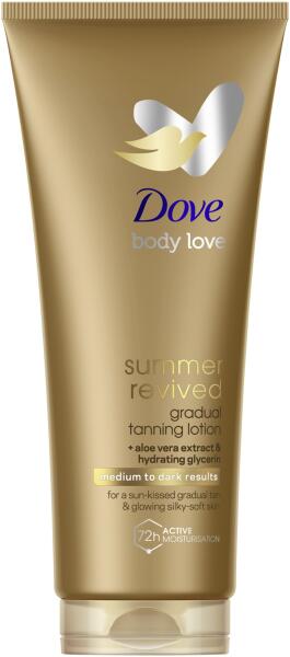 Dove Summer Dark testápoló, 200mlTestápoló természetes önbarnító összetevőkkel és progresszív hatással a közepesen intenzív barnulásért. Akár 72 órán át hidratálja a bőrt. Aloe vera kivonattal és hidratáló glicerinnel. Gyorsan felszívódik a bőrbe, és nem hagy nem kívánt nyomokat. Fokozatos barnulást biztosít. Ha az év bármely szakában ragyogó nyári barnaságot szeretne elérni, akkor a Dove Summer Revived testápoló a tökéletes választás az Ön számára. A kiváló minőségű bőrgyógyászati ápolást önbarnító összetevőkkel ötvözi, fokozatos és természetes barnulást garantálva. Érzékeny bőrre alkalmas; Gyengéd önbarnító összetevőket ötvöz a Cell-Moisturisers technológiával a hidratált bőrért; Fokozatos barnulást és ragyogó bőrkinézetet biztosít; Kifejezetten közepesen intenzív barnuláshoz tervezve. Masszírozza a terméket egyenletesen tiszta, száraz bőrre. Használat után mosson kezet. Napsugárzás esetén mindig használjon fényvédőt. A legjobb eredmény érdekében az önbarnító krém felvitele előtt radírozza le a bőrét. Fedezze fel a Dove világát, ahol az igazi szépség otthon van. A Dove több mint egy évtizede küldetésének tekinti, hogy a szépséget megbízható forrássá tegye. Összetevők: Víz, Glicerin, Dihidroxi-aceton, Izopropil-palmitát, Sztearinsav, Dimetikon, GlikolSztearát, PEG-100 sztearát, Hidroxi-etil-akrilát/Nátrium-akriloil- dimetil-taurát kopolimer, AloeBarbadensis levéllé por, Glicerin-sztearát, Nátrium-hidroxi-propil-keményítő-fos zfát, KaprililGlikol, Fenoxietanol, Izohexadekán, Parfüm, Cetil-alkohol, Citromsav, Poliszorbát 60, Dimetikonol, Dinátrium-EDTA, Sztearamid AMP, Szorbitán-izosztearát, Karamell, Maltodextrin, Hidroxi-sztearinsav, Propilénglikol, Palmitinsav, Nátrium-klorid, Nátrium-szulfát, Tejsav, Alfa-izometil-ionon, Benzil-alkohol, Citronellol, Kumarin, Hexil-cinnamal, Limonén, Linalool, CI 16255, CI 47005.